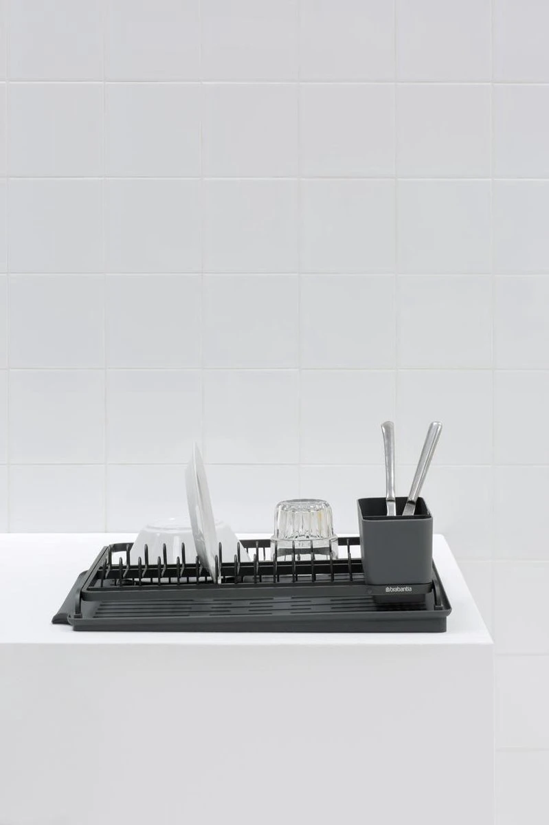 Afgeknapt op je afwas? Het Brabantia Sink Side Afdruiprek – Dark Grey geeft aandacht aan je aanrecht. Dit mooie afdruiprek biedt volop ruimte aan borden, pannen, glaswerk en bestek. De siliconen mat vangt het overtollige water op en houdt je aanrecht droog en kan ook los worden gebruikt. Met het uitneembare bestekbakje vul je in een handomdraai je besteklade.