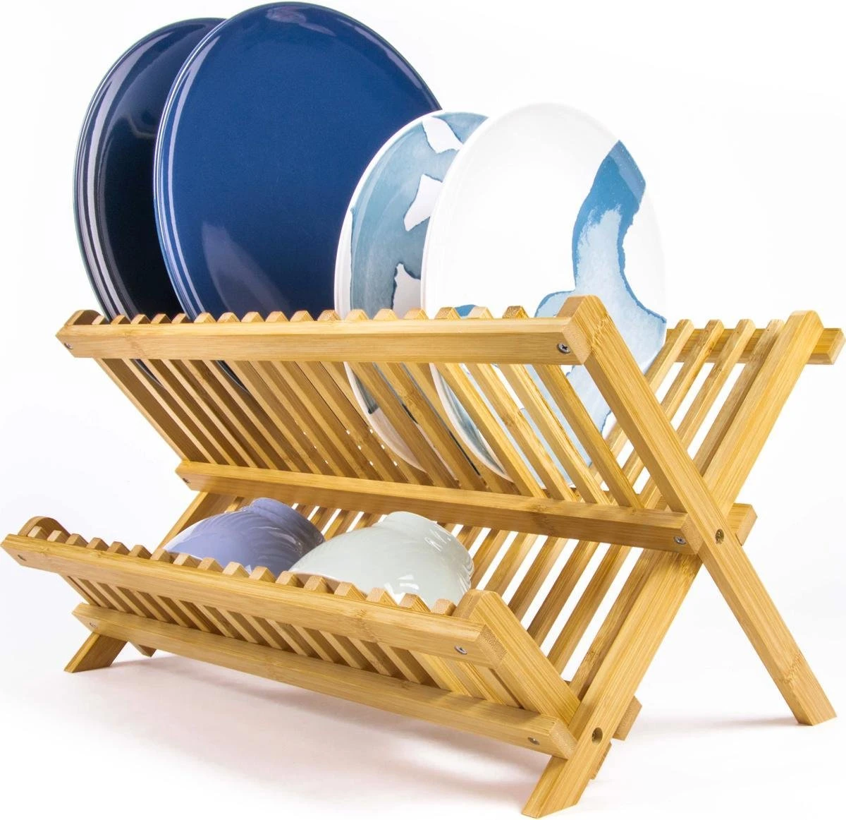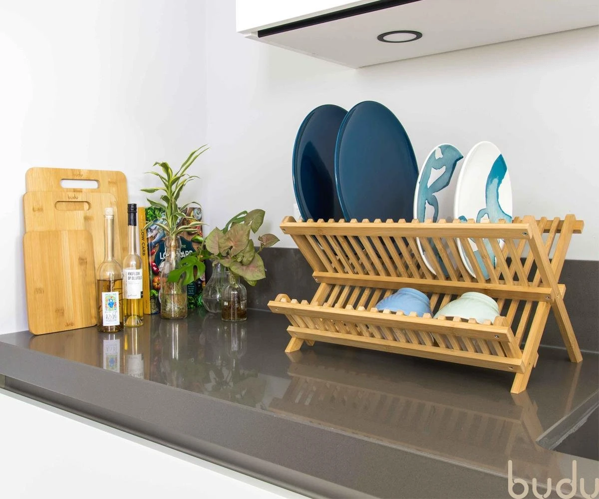 Budu Afdruiprek – Afdruiprekje Van Bamboe Hout – Afdruiprek Voor Afwas – Vaatwasrek – Keukenrek – Inklapbaar – Opvouwbaar –