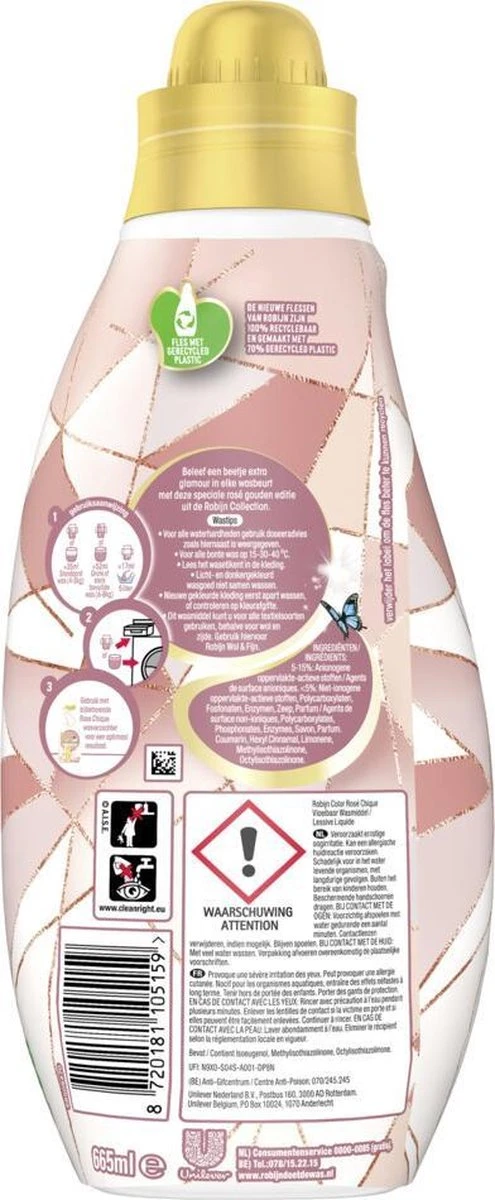 - Robijn Color Rosé Chique wasmiddel is geschikt voor alle was tot 60 graden