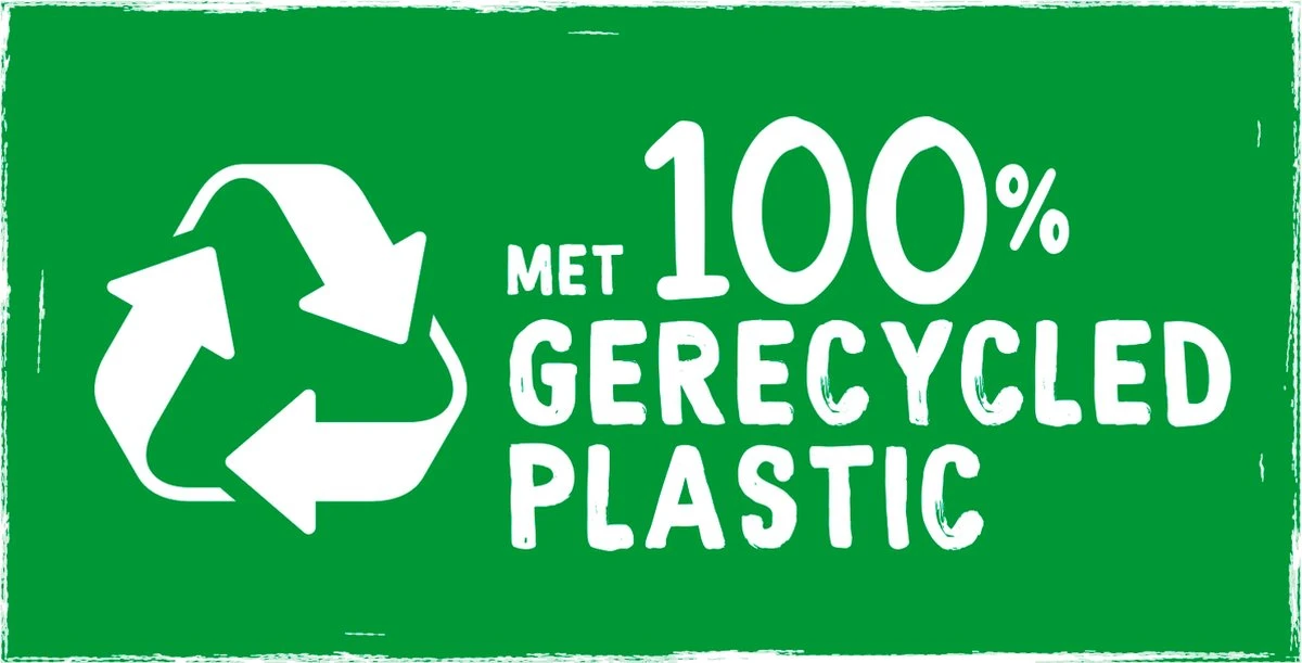 - De houder en verpakking zijn gemaakt van 100% gerecycled plastic en karton en zijn 100% recyclebaar